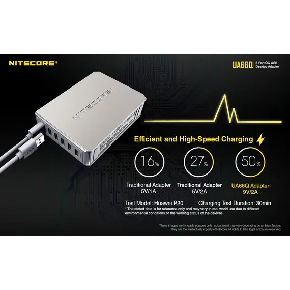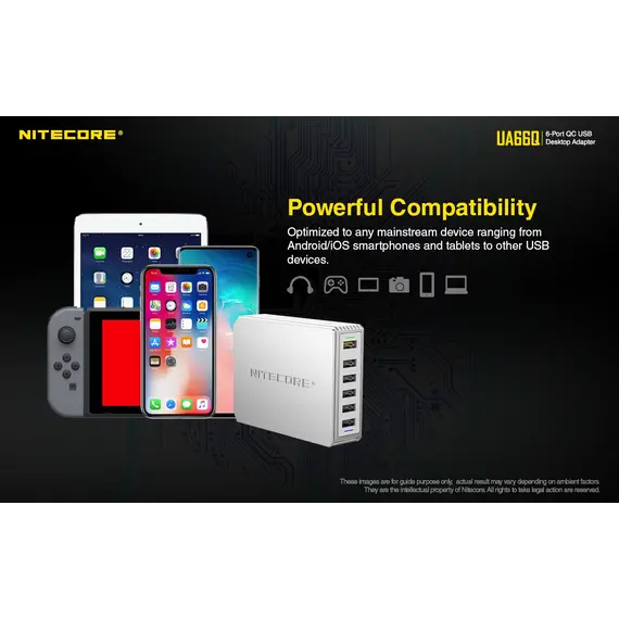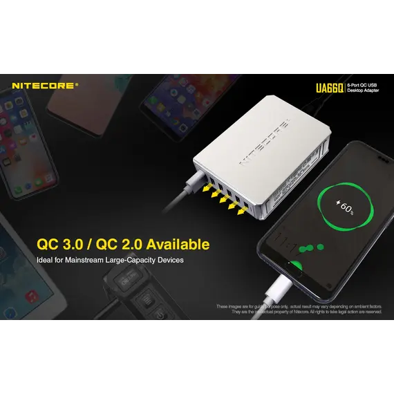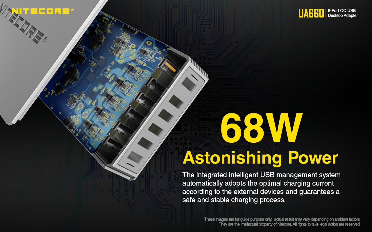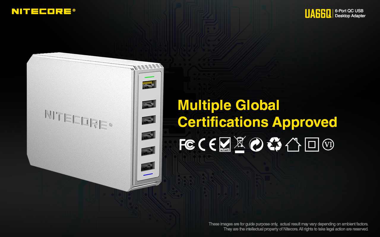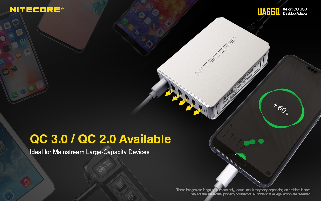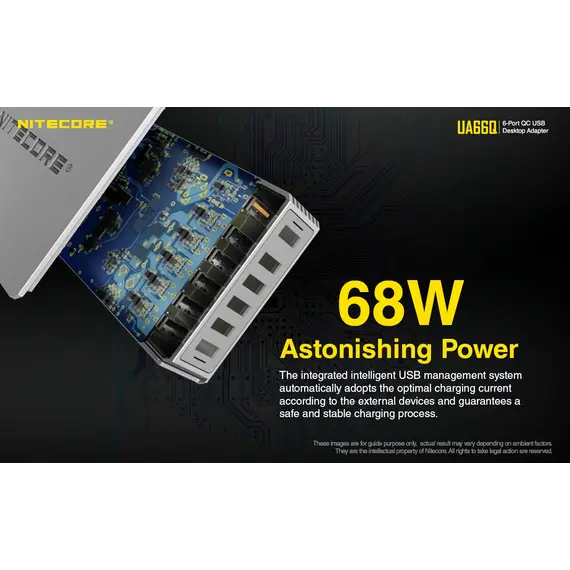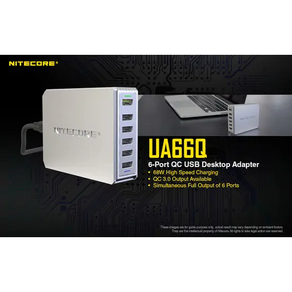 ΤΡΟΦΟΔΟΤΙΚΟ USB, NITECORE UA66Q desktop adaptor, 5V/10A, 68w Max, High speed charging