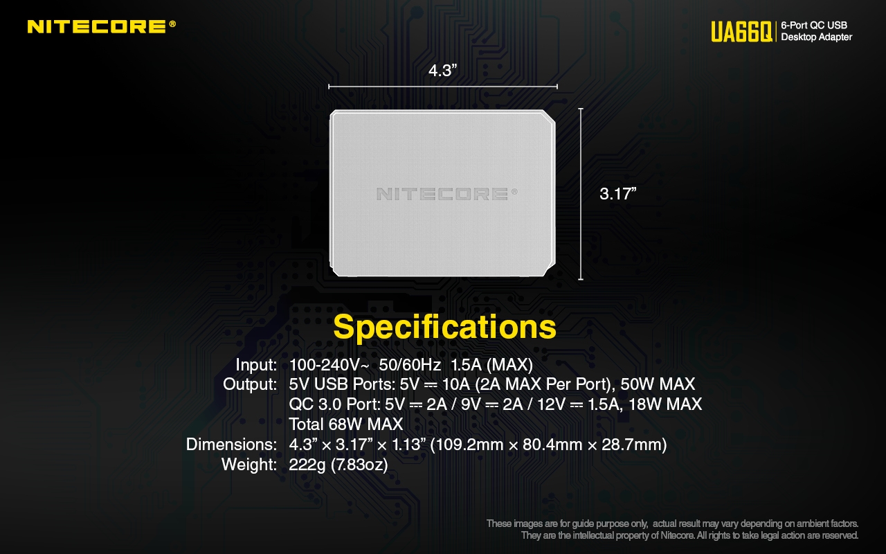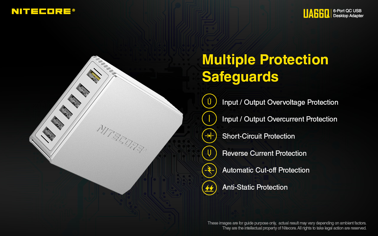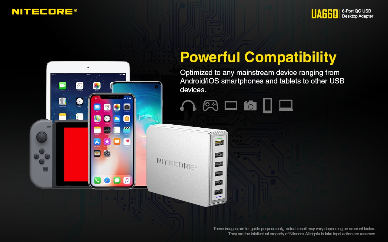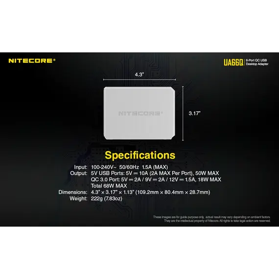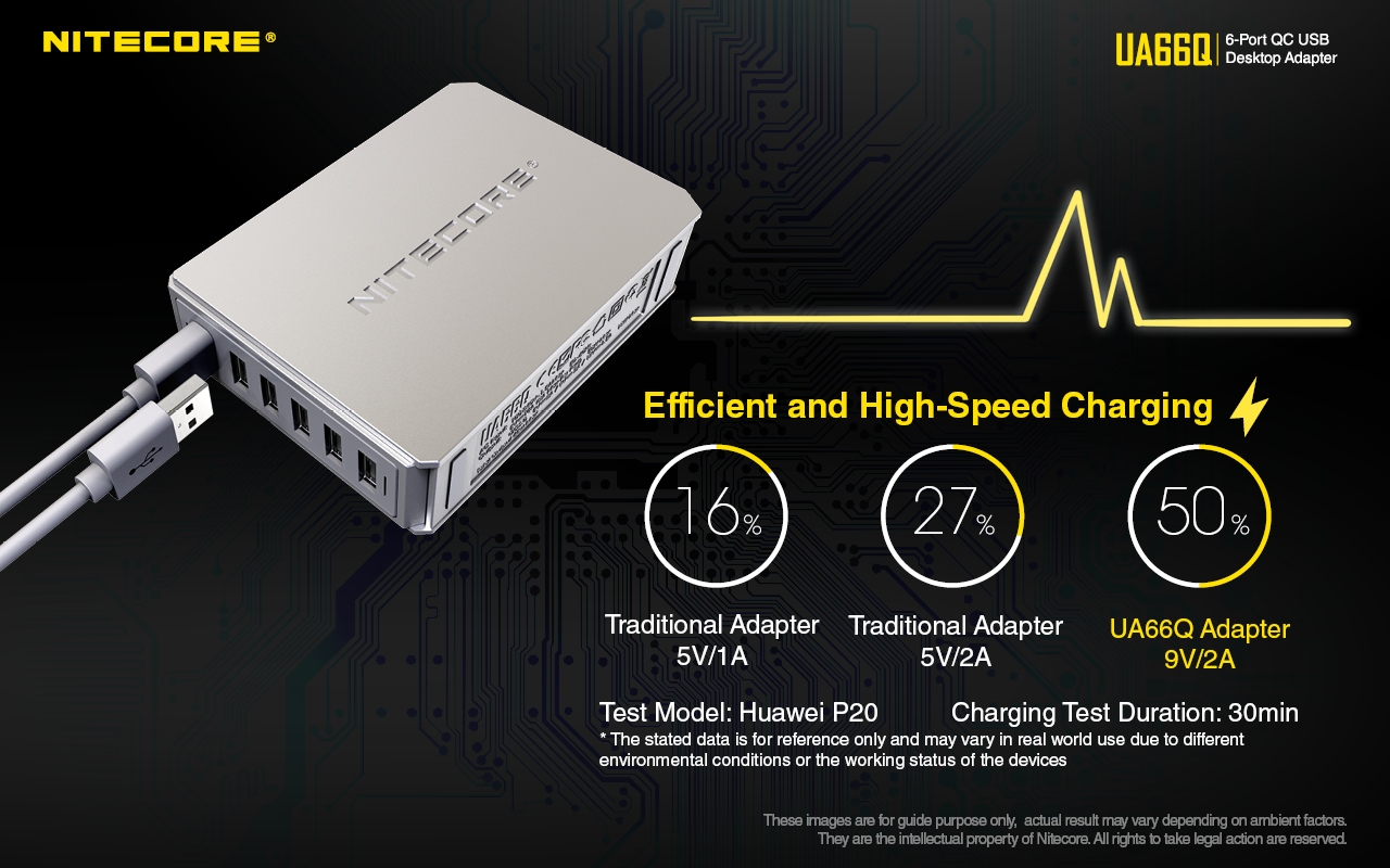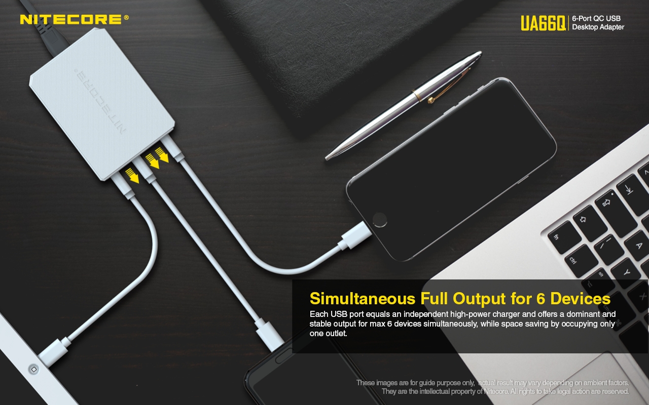 ΤΡΟΦΟΔΟΤΙΚΟ USB, NITECORE UA66Q desktop adaptor, 5V/10A, 68w Max, High speed charging