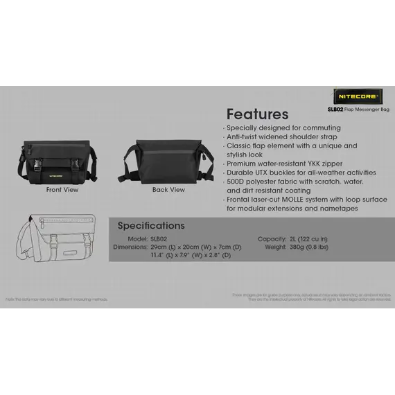 ΤΣΑΝΤΑΚΙ NITECORE EDC, SLB02, Waterproof 500D Polyester Fabric , 2lt