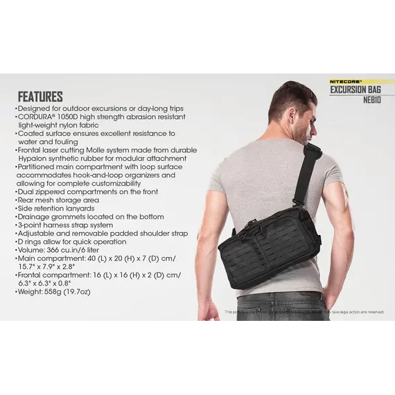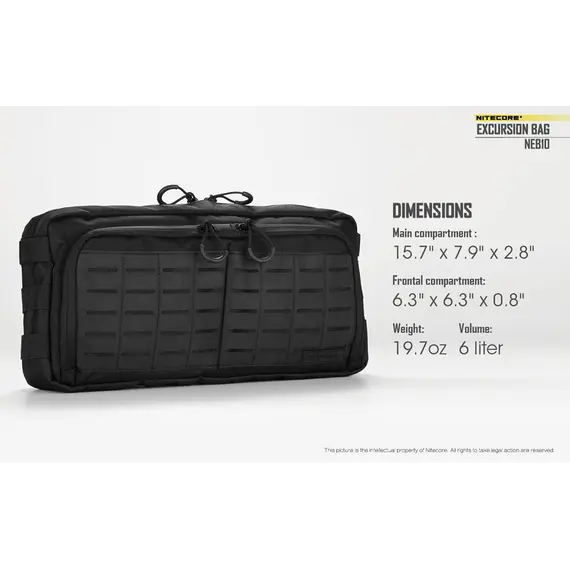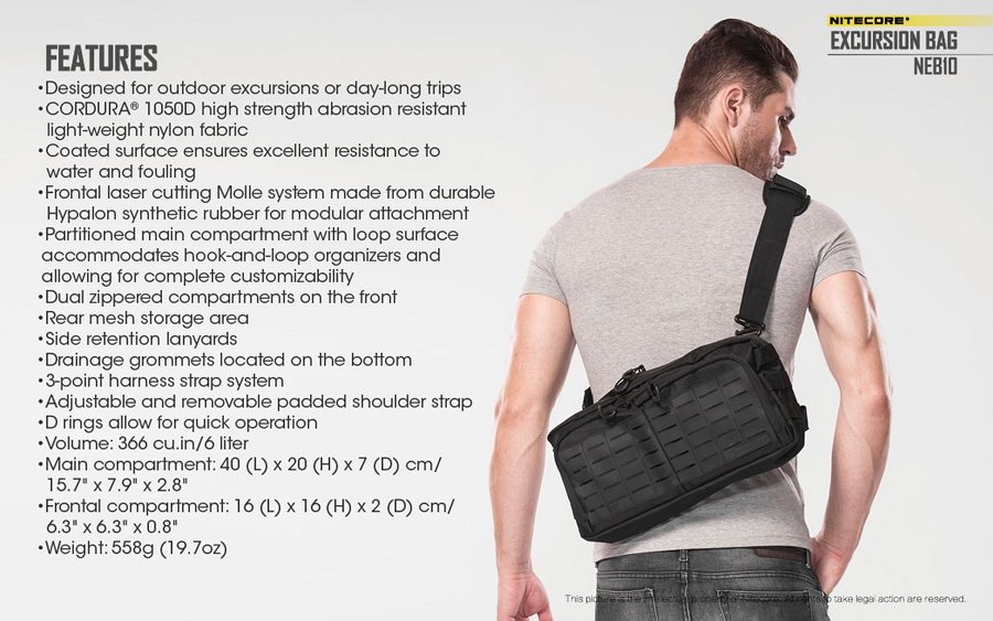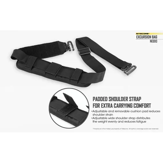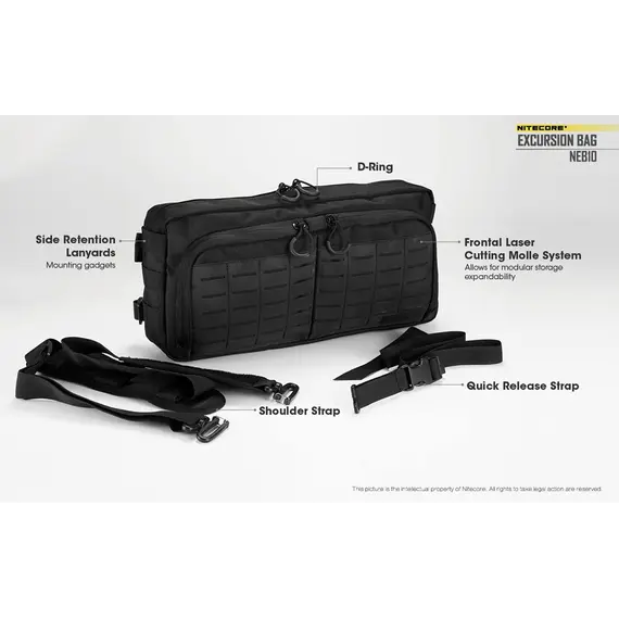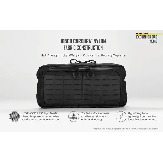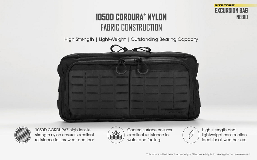 Εξοπλιστείτε για την επόμενη περιπέτεια σας με την τσάντα NEB10, της εταιρείας NITECORE. Κατασκευασμένη από ανθεκτικό και ελαφρύ ύφασμα στρατιωτικών προδιαγραφών 1050D, είναι σχεδιασμένη να μεταφέρει όλα τα εργαλεία, τους φακούς και οποιονδήποτε άλλο εξοπλισμό για υπαίθριες δραστηριότητες και ημερήσιες εκδρομές.